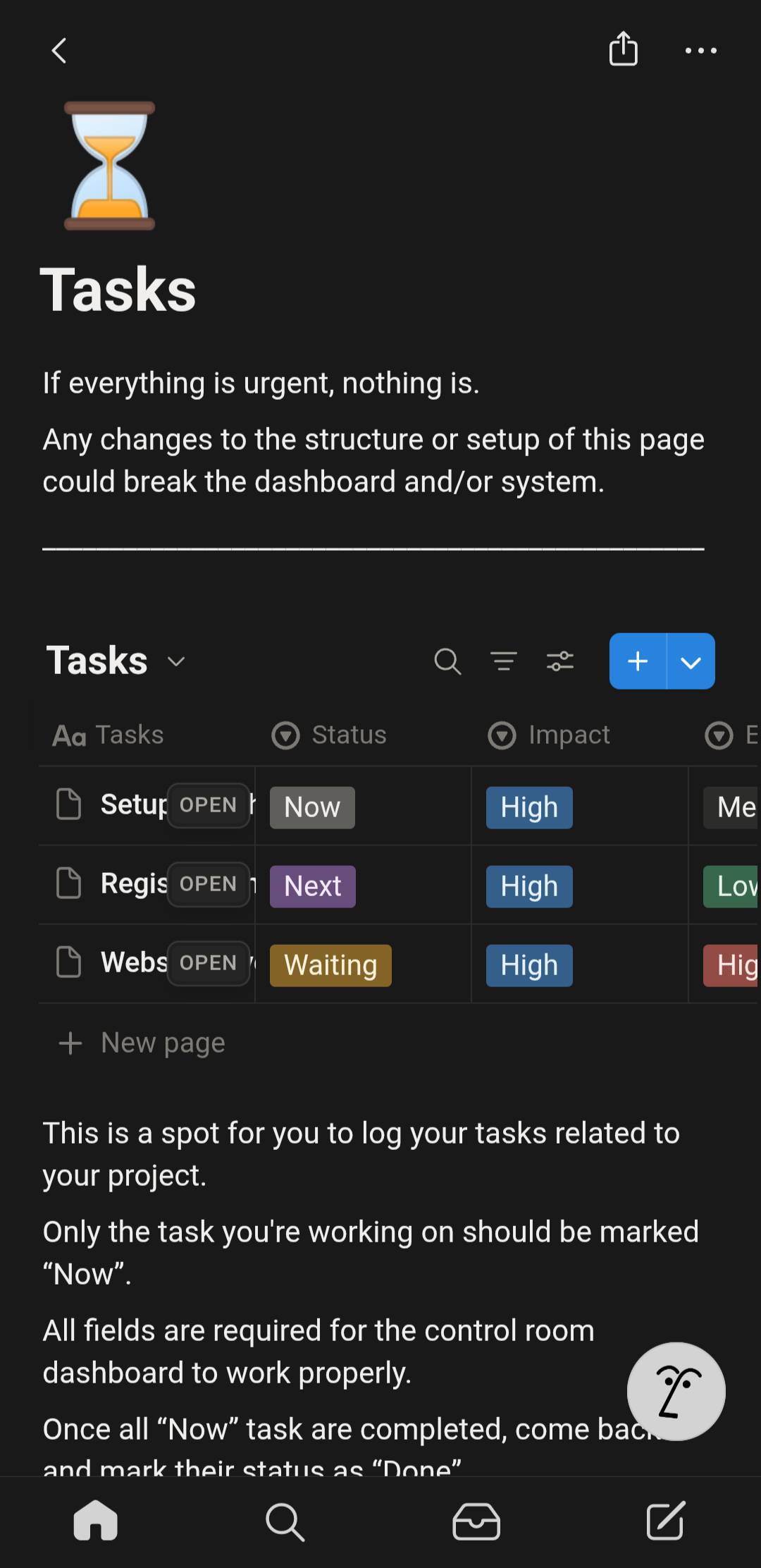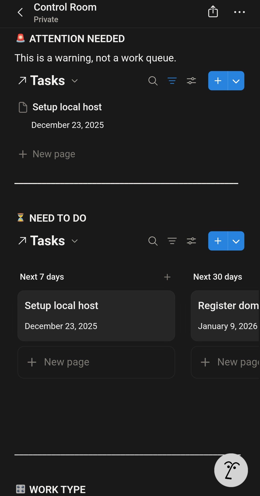 Control Room is a Notion system designed to reduce reactivity without ignoring deadlines.